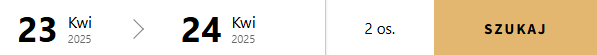 Proszę wybrać DATĘ PRZYJAZDU, DATĘ WYJAZDU oraz ILOŚĆ OSÓB.